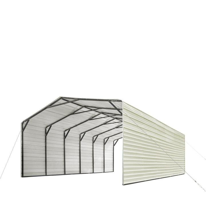 Description The TMG Industrial 20* x 30* All-Steel Carport Shed with an increased sidewall height of?10′?is designed to last through years of sun, wind, rain, and snow. The roof is made of 27-gauge corrugated steel that is fully galvanized and coated with cream-coloured polyester paint. A 15-gauge 2 powder-coated steel…