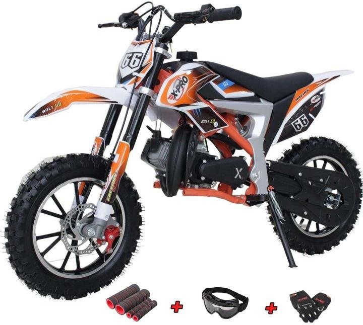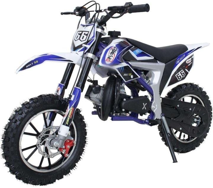 • ▽Powerful 2 Stroke Air-cooled Engine▼This Dirt bike comes with powerful high torque 2-stroke 50cc air-cooled engine designed to prevent overheating. There will be no worries about overheating or extra engine maintenance, powerful than regular 50cc engine. The rider will definitely have much fun with power and speed !