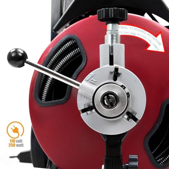 • This drain cleaning machine is compact and versatile, designed for commercial or residential applications. Can be used on sinks, showers, and floor drains, ideal for lateral lines drain cleaning and service